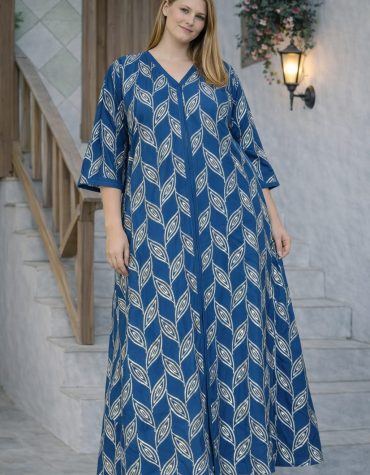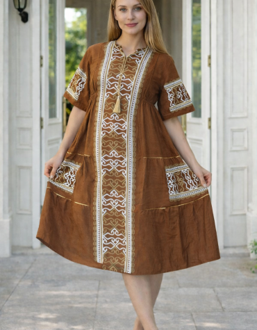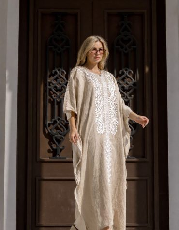 H7 جلابية كتان بتطريز من الطراز الاسلامي