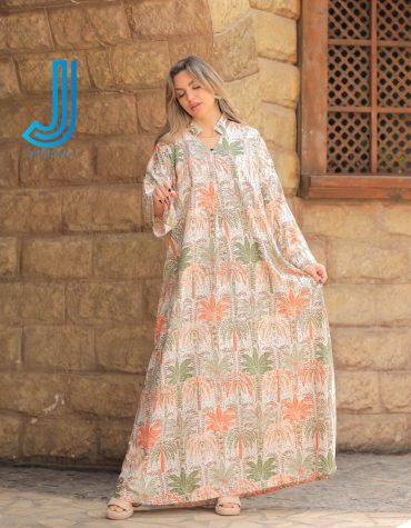 h8 جلابية قطن بيور برسمة النخيل التراثية