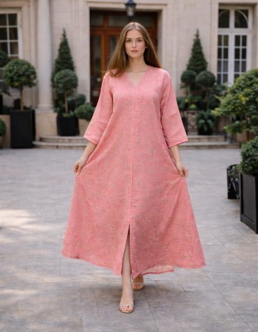 H7 جلابية كتان بتطريز من الطراز الاسلامي R11