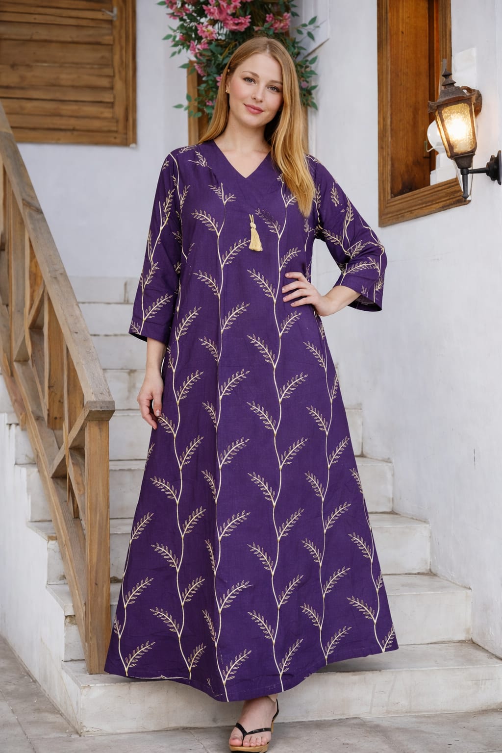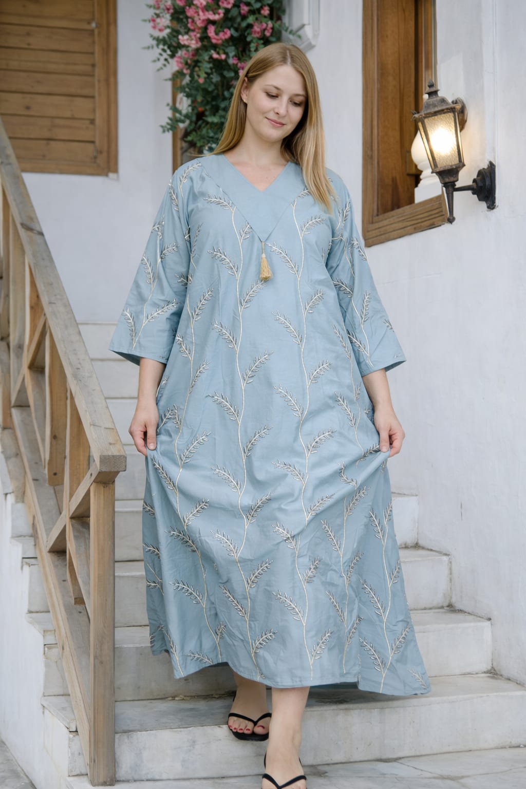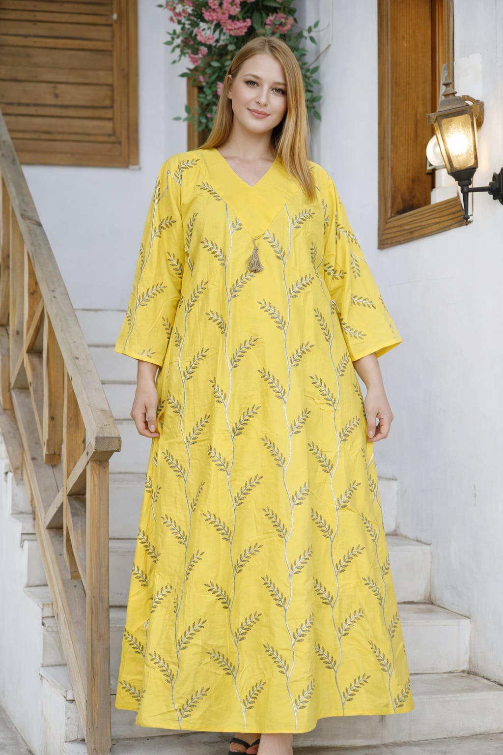 جلابية انغام من القطن المصري الخالص وبتطريز عصري وشكل جديد كليا