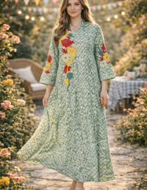 H7 جلابية كتان بتطريز من الطراز الاسلامي