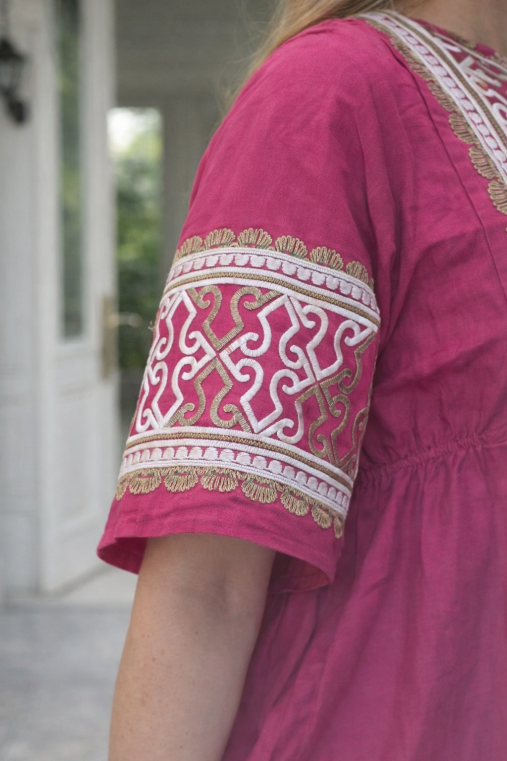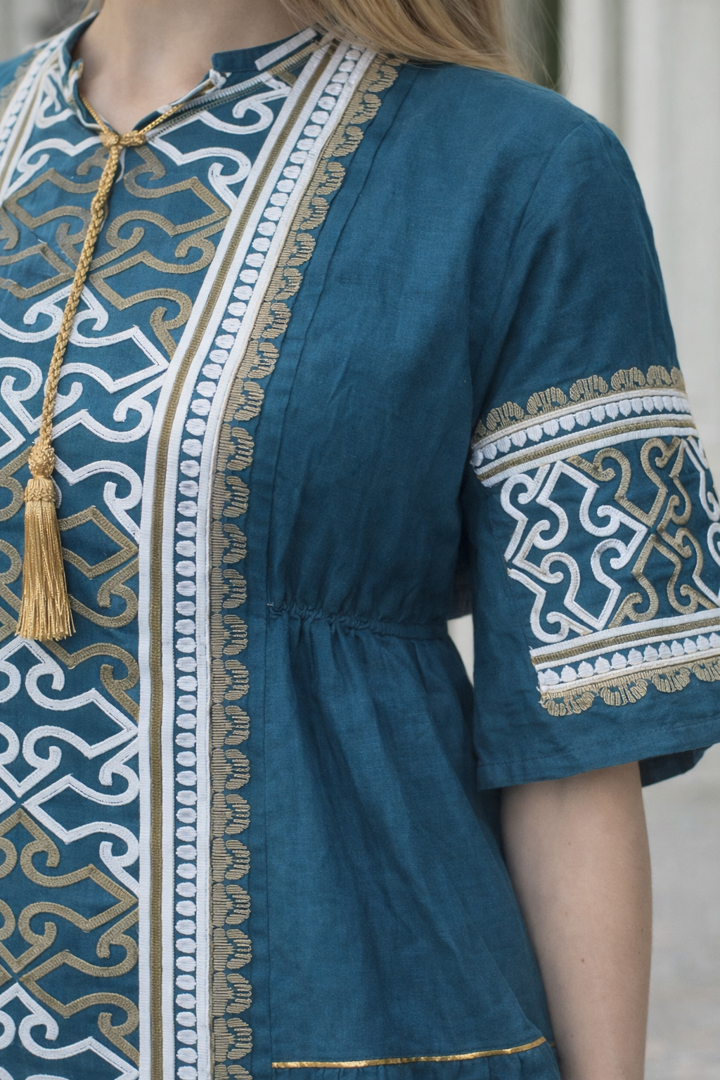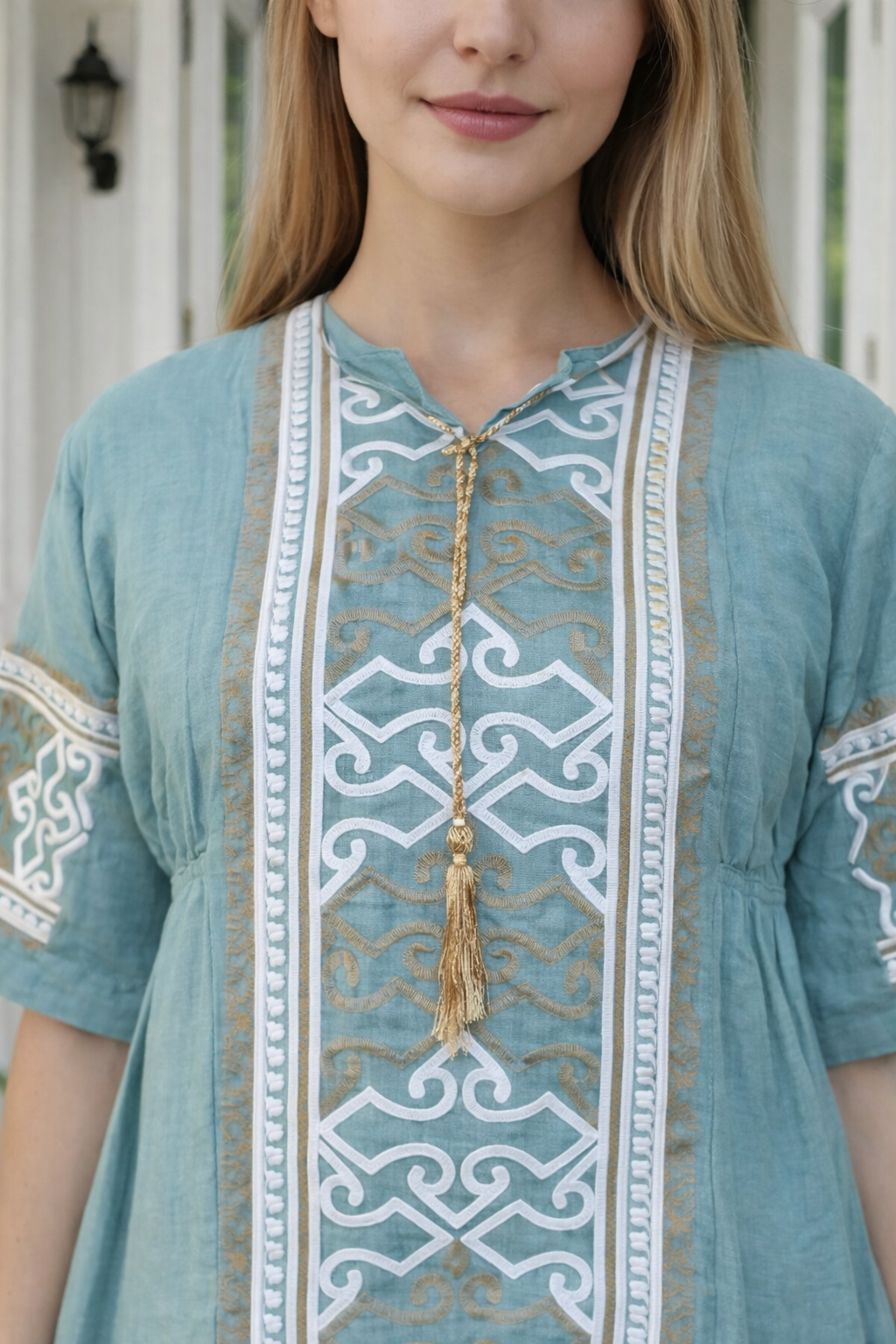من القطن الكتان الخالص وبتطريز حديث من الحرير بالكامل