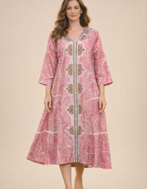 H7 جلابية كتان بتطريز من الطراز الاسلامي R11
