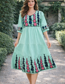 من القطن الكتان الخالص وبتطريز حديث من الحرير بالكامل