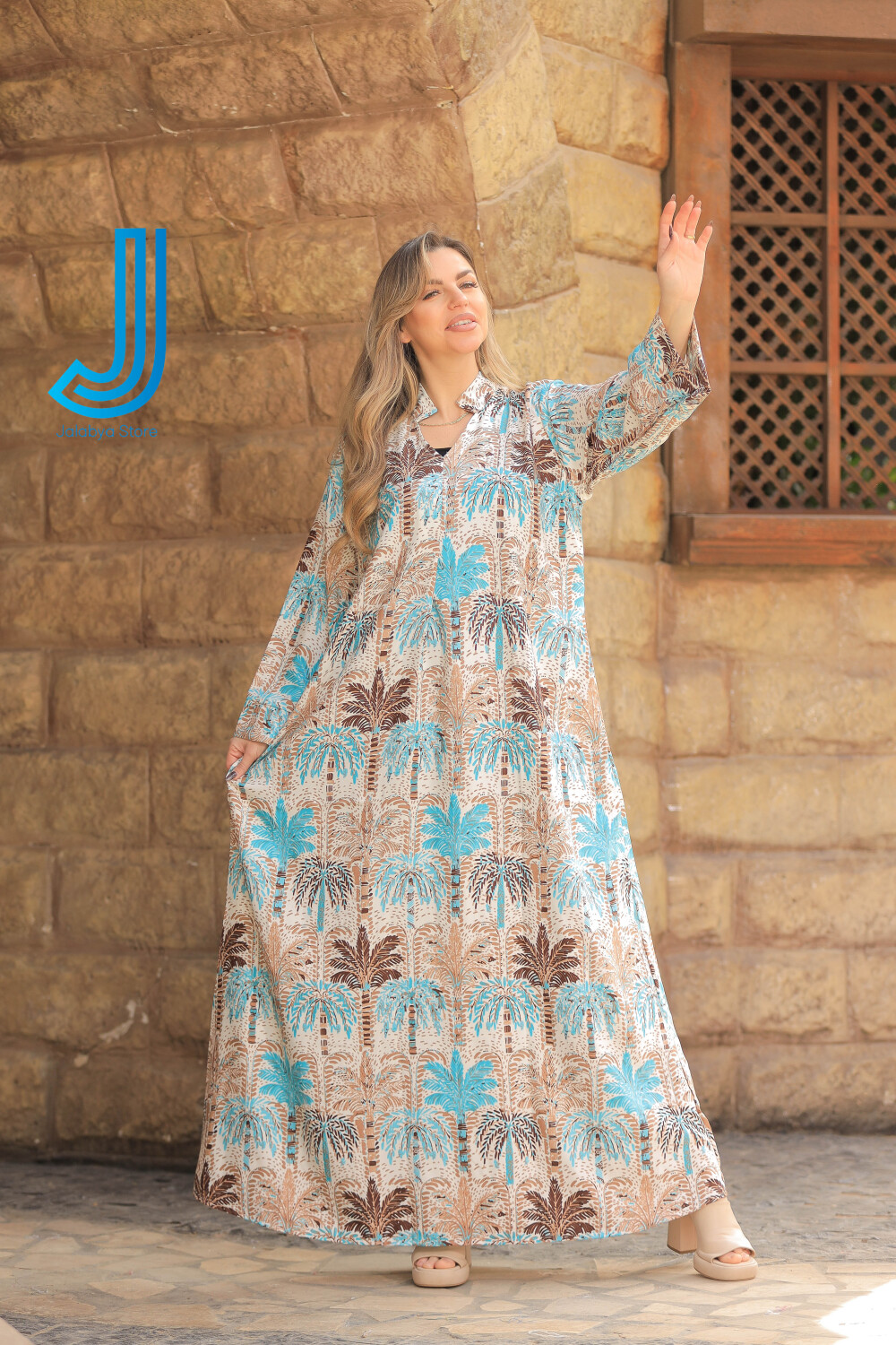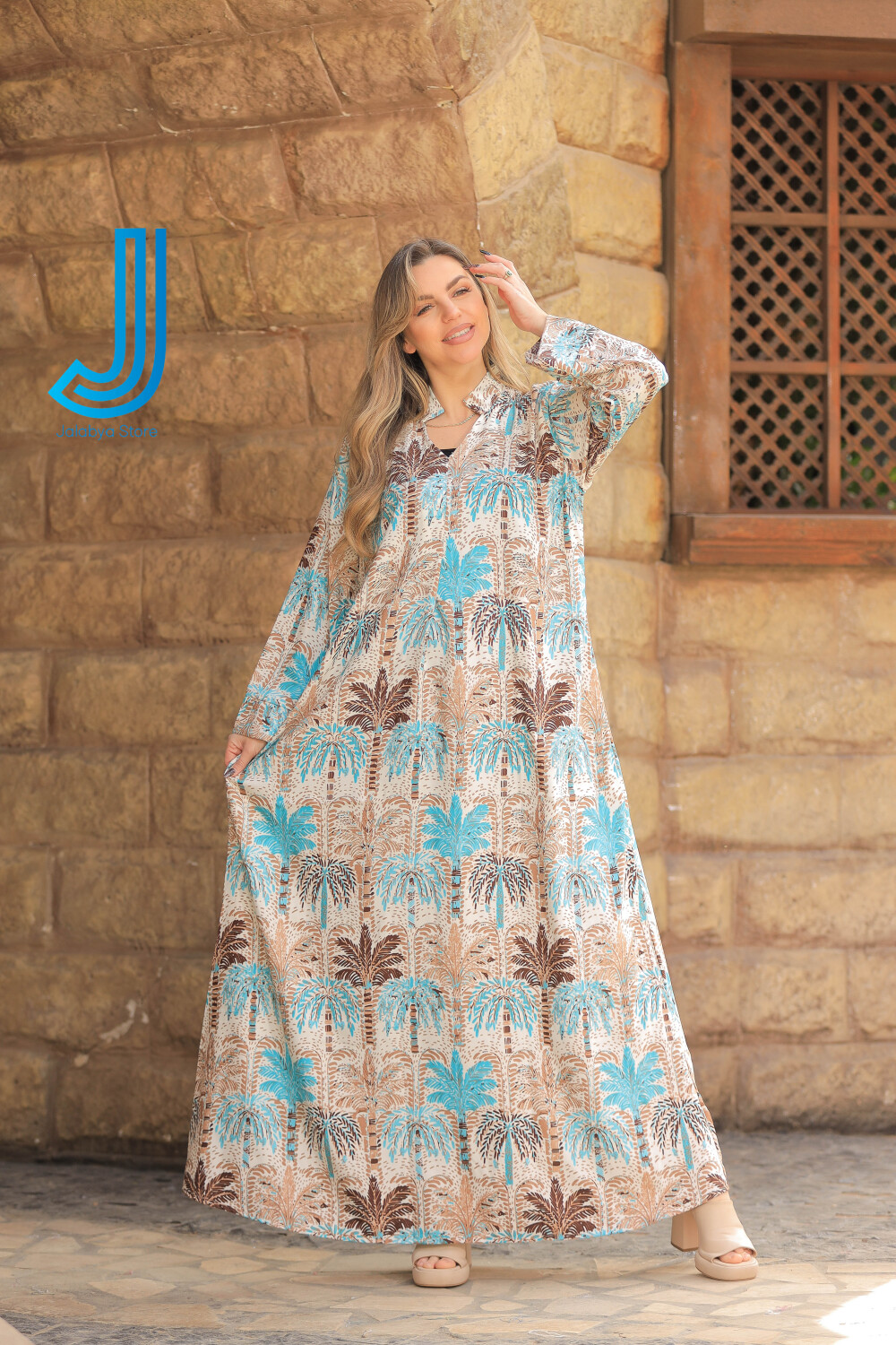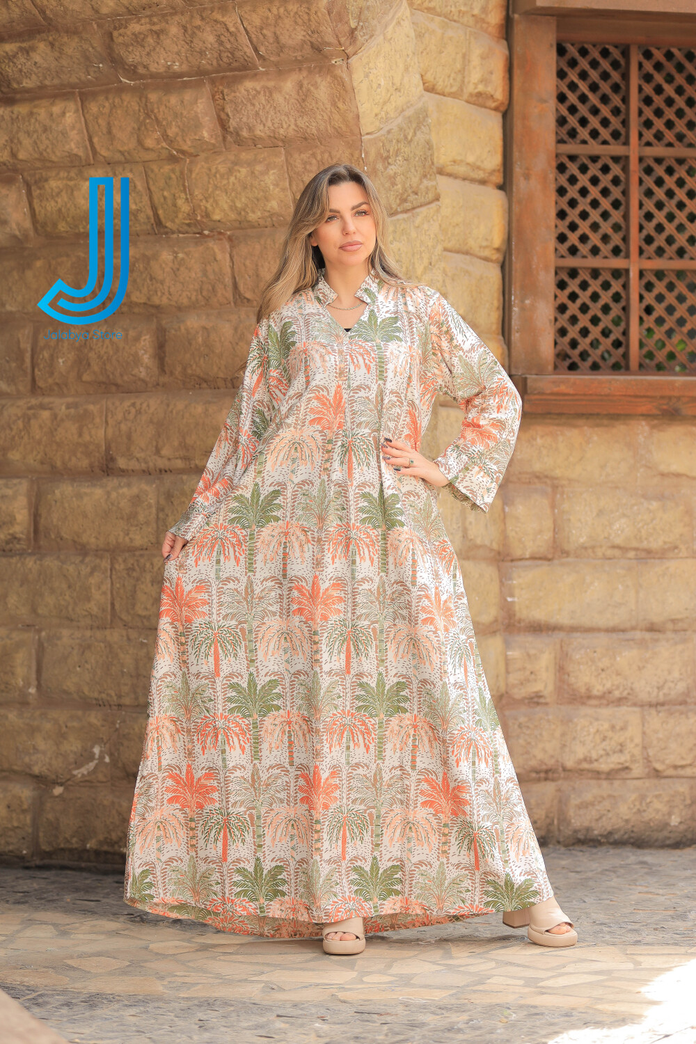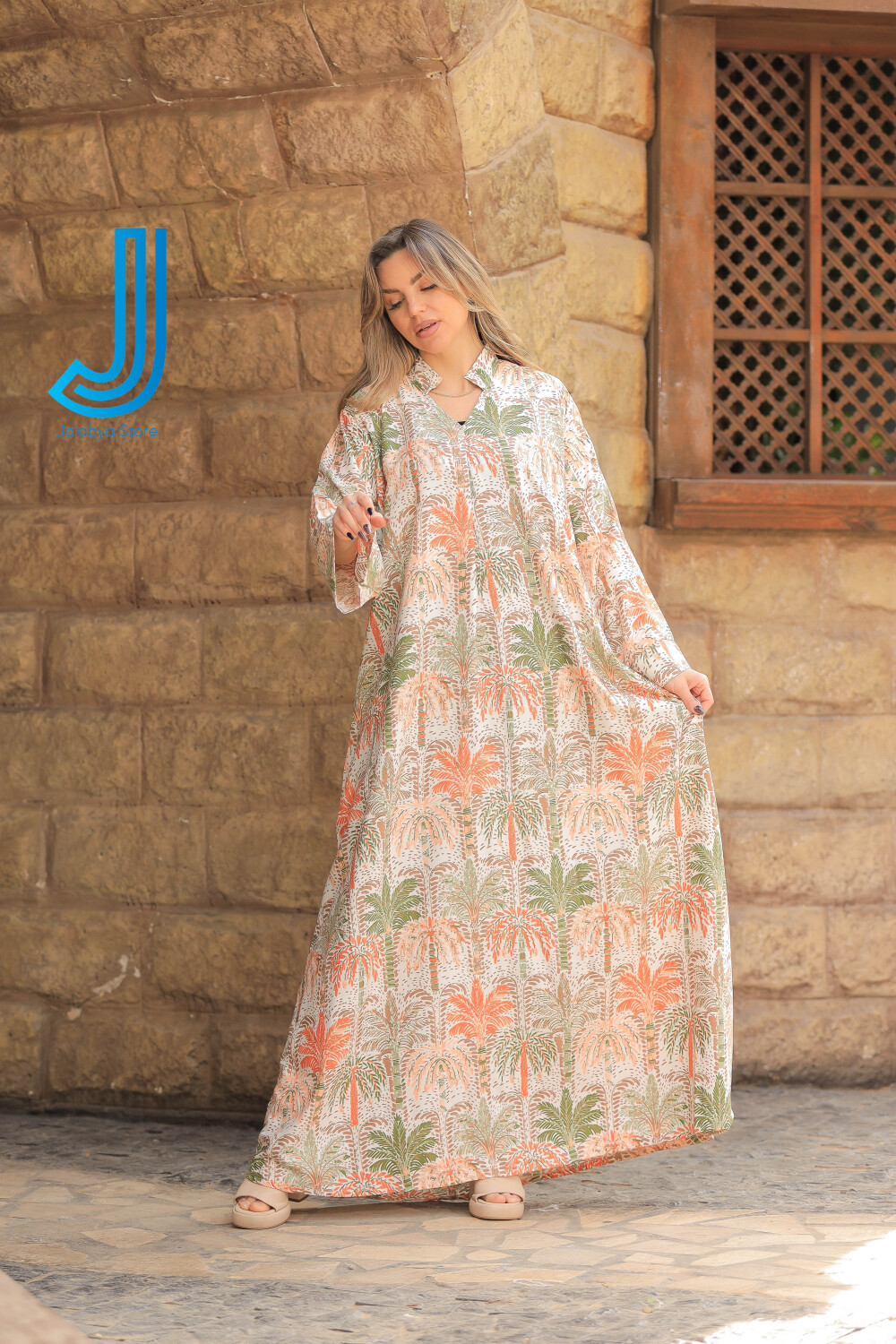h8 جلابية قطن بيور برسمة النخيل التراثية